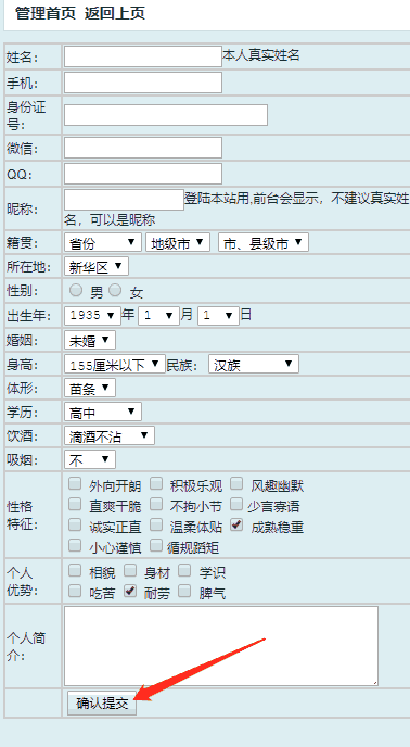 完善个人信息如下图:这里不需要点击,点击了前边的确认提交,自己就出来了。